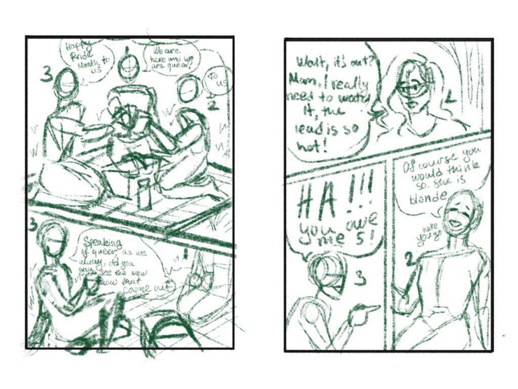 Viktoria Velcheva’s comic collection QUEER EVERYDAY presents the everyday joy queer people experience. It examines the importance of those happy moments and is a response to the lack of representation of queer joy in the media. The short stories are based on real-life experiences and the desires of the author and other queer people around the world that are denied the opportunity to live their authentic lives. They show fictionalized versions of our world, depicting moments uninterrupted by the challenges and blues of the world. The comics are left open-ended to show the possibilities of the moments continuing off-screen, as real life does not have concrete endings, and life just moves on. The purpose of the project is to show the empowering feeling that comes with queer joy.