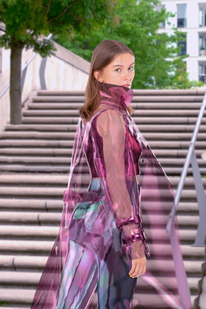 Die Modestrecke FUNKTION–D von Katharina de Witt setzt sich mit neuen digitalen Strömungen in der Modefotografie auseinander. Dort hat sich innerhalb der letzten Jahren eine innovative Branche entwickelt: die digitale Kleidung. Diese ersetzt nicht die physische Alltagskleidung, sondern bietet eine neue Möglichkeit außergewöhnliche Looks zu kreieren. Der physische Stoff steht dabei nicht im Vordergrund, sondern das Gefühl welches durch das Design, beim Betrachten des Bildes, erzeugt wird. In Zeiten des Klimawandels ist es wichtig, Ressourcen einzusparen. Digitale statt physischer Mode für die Online-Präsenz von Bildern kann hierbei eine Handlungsalternative bieten.