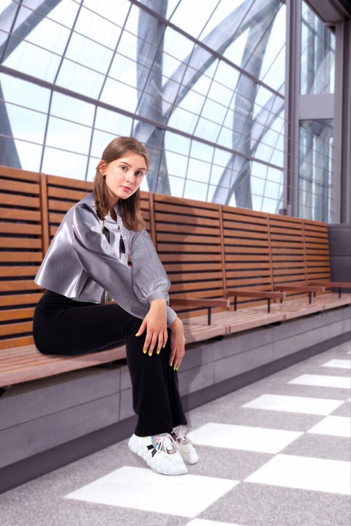 Inspiriert vom Metaversum als digitalem Paralleluniversum hat de Witt Model, Hintergrund und Kleidung digital zu einem werden lassen. Die Generation Z, auch Digital Natives genannt, steht