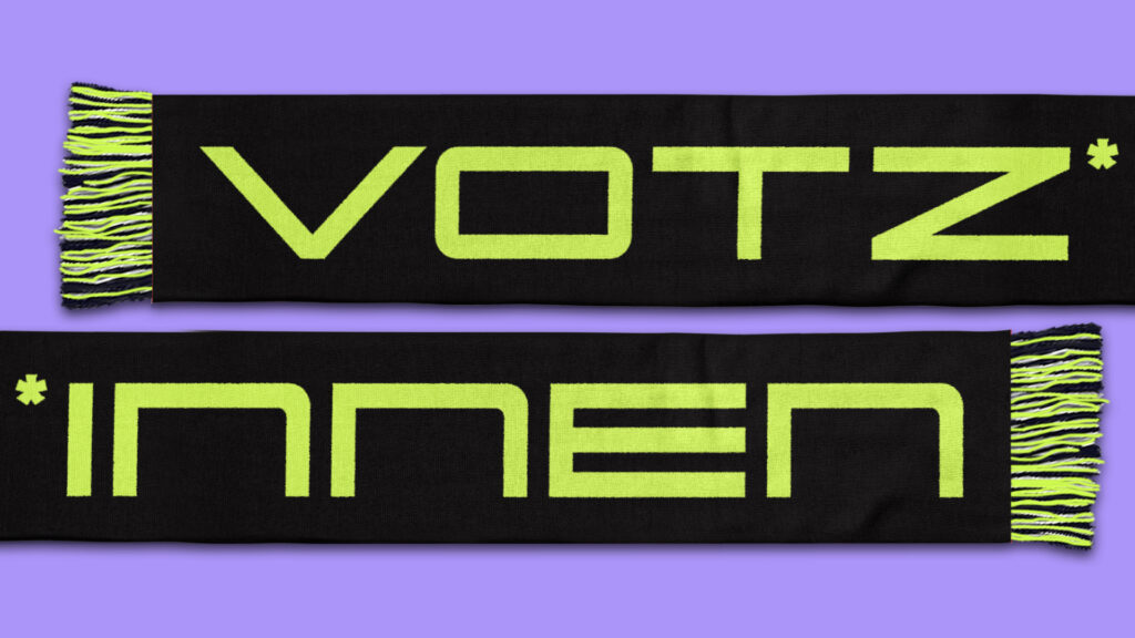 Das Bachelor-Projekt VOTZE FORDERN von Marieke Mucks thematisiert die positive Wiederaneignung des Schimpfwortes Votze. Hierfür wird eine Marke aus dem Schimpfwort Votze generiert, neu interpretiert und gebrandet. Eine laute, provokante Bewegung entsteht, die diesen Begriff positiv als allumfassende Bezeichnung für das weibliche* Geschlechtsorgan zurückfordert. So wird aus einer patriarchalen Beleidigung eine feministische, kraftvolle Waffe der Frau. Das weibliche Geschlechtsorgan findet dadurch im visuellen und sprachlichen Gebrauch eine reelle Existenz und gibt Frauen* die Möglichkeit, sich mit ihrem Geschlecht ohne Scham und negative Assoziationen auseinanderzusetzen.